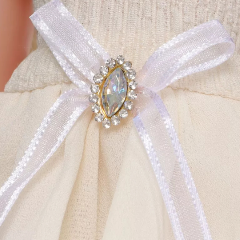 Accesoriul din talie, cu o pietricică sclipitoare încadrată de o fundiță satinată, adaugă rafinament și face ca păpușa să pară o adevărată prințesă.