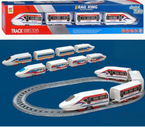 Trenulețul electric Rail King aduce magia călătoriilor feroviare direct în sufrageria copilului tău, cu o lungime de 58 cm și design modern.