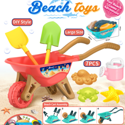 Acest set de plajă DIY de dimensiune mare transformă joaca într-o experiență completă, începând chiar de la asamblarea roabei, un pas simplu și distractiv pentru copii și părinți. Cu dimensiuni de aproximativ 27 cm lățime și 20 cm adâncime, roaba este ideală pentru transportul accesoriilor de nisip.