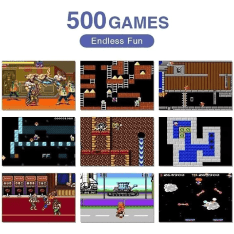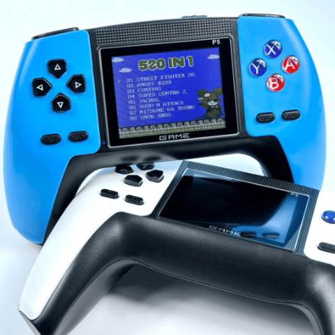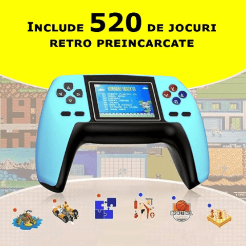 Această consolă cu formă de manetă modernă include 520 de jocuri clasice din anii ’90, gata preîncărcate pentru distracție imediată.