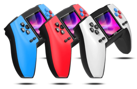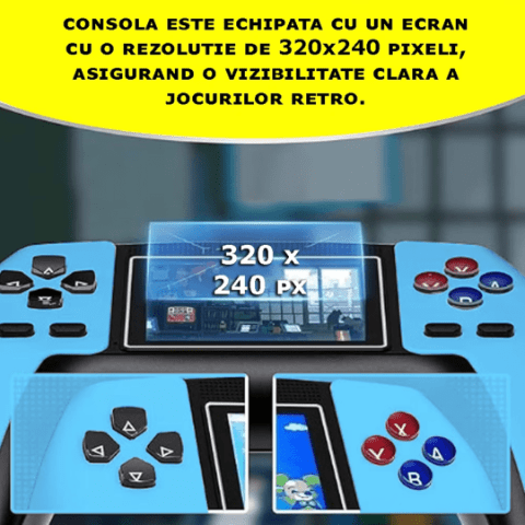 Consola este disponibilă în culori atractive – albastru, roșu și alb – cu un design ce oferă aderență confortabilă în mâini.