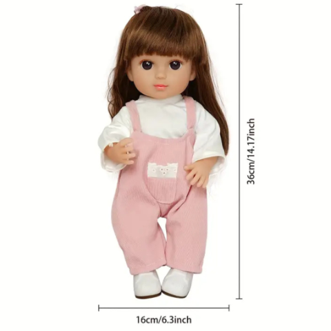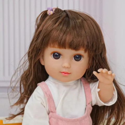 Cu ochi mari, strălucitori și păr lung brunet, păpușa Chimi devine imediat personajul preferat din jocurile de zi cu zi.
