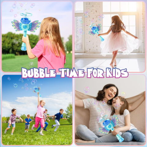 Printr-o simplă apăsare de buton, jucăria începe să elibereze baloane în timp ce luminează delicat, fascinând orice copil.