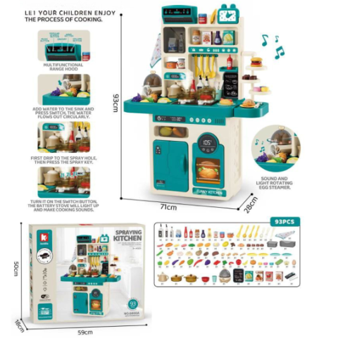 Bucătărie interactivă pentru copii cu abur real, sunete de gătit și 93 piese de joacă – joc educativ de rol 3+ ani
