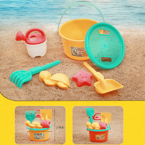 Găletușa de nisip cu mâner este ușor de transportat și perfectă pentru aventurile la plajă sau în nisipul din parc.
