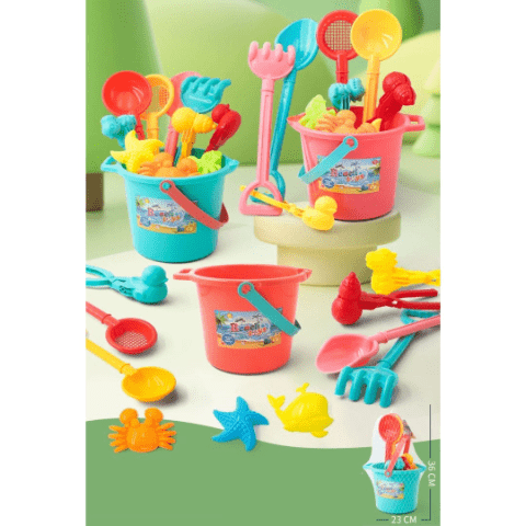Găletușa colorată atrage instant atenția copiilor și devine centrul distracției la plajă sau în nisipul din curte.