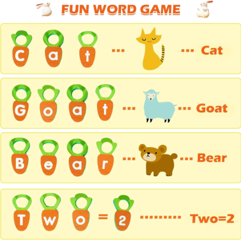 Activitatea devine și mai interesantă când copiii sunt provocați să formeze cuvinte sau să potrivească literele în gura iepurașului simpatic.