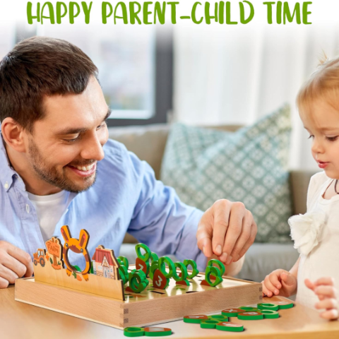 Designul colorat cu animale și personaje fermecătoare stimulează interacțiunea părinte-copil și învățarea prin joacă.