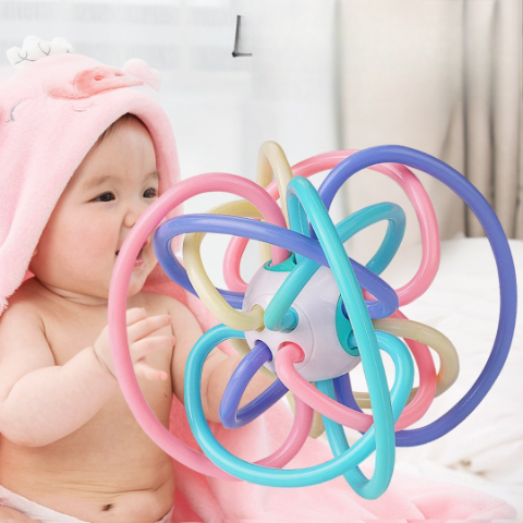 Bebelușii o pot strânge, roti și mușca, descoperind texturi și forme care susțin dezvoltarea cognitivă timpurie.