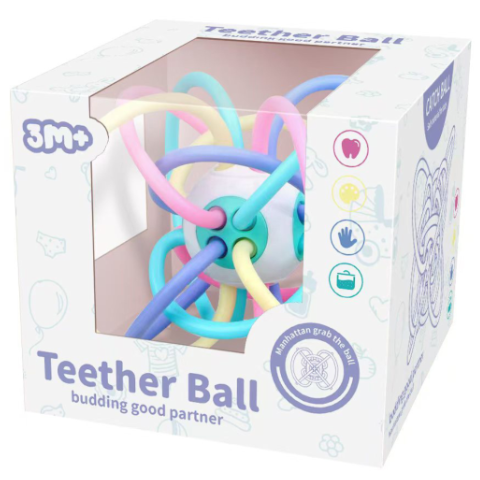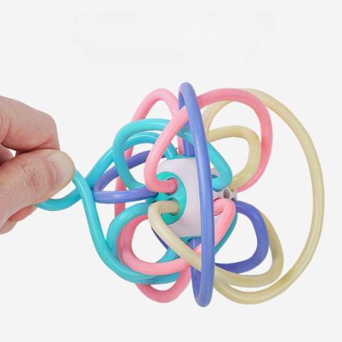 Mingea senzorială Manhattan captează imediat atenția bebelușului cu formele sale flexibile, colorate și interconectate, perfecte pentru prindere și explorare tactilă.