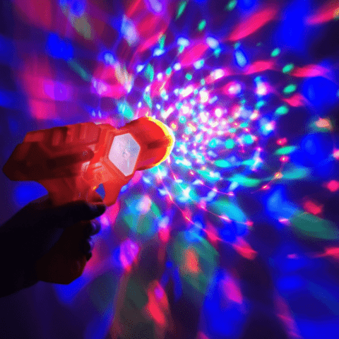 Fie că este roșu sau albastru, fiecare pistol luminează puternic și oferă o experiență imersivă în întuneric total.