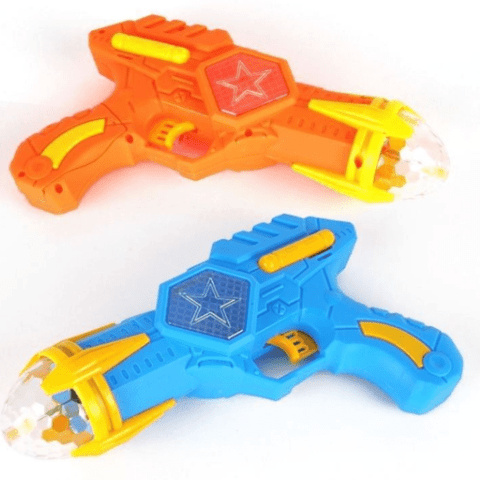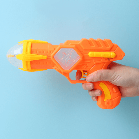 Mânerul este adaptat pentru prinderea ușoară de către copii, cu un trăgaci intuitiv care activează simultan lumina și sunetul.