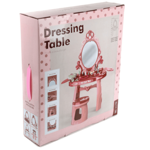 Scăunelul confortabil inclus este perfect pentru ca micuțele să se așeze la măsuța lor de machiaj.