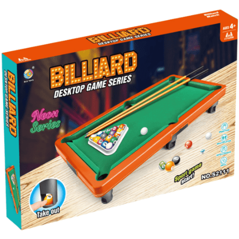 Setul include 2 tacuri, bile colorate și triunghi pentru aranjare, exact ca la biliardul real.