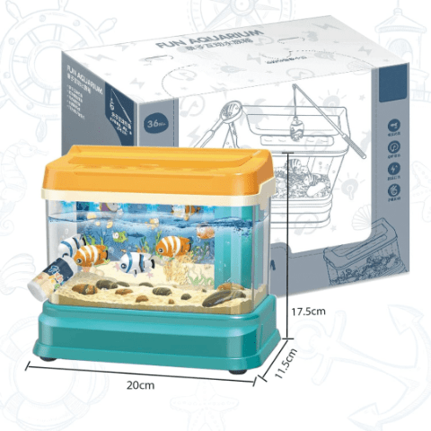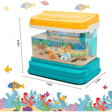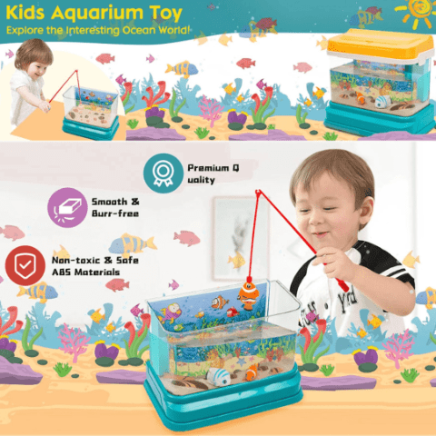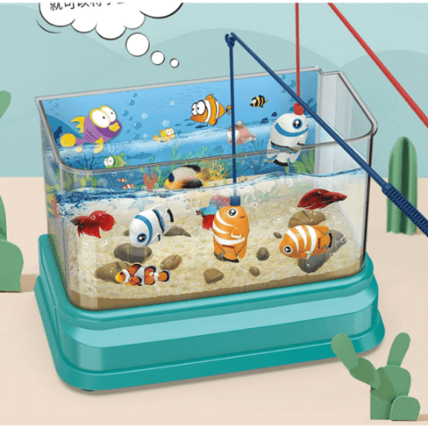 Acvariul colorat cu pești magnetici le permite copiilor să se joace la pescuit chiar în casă.