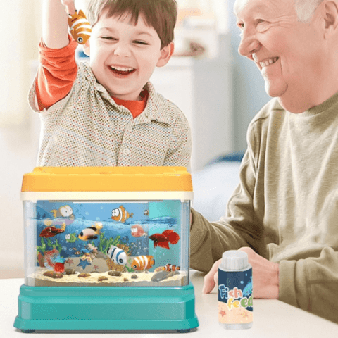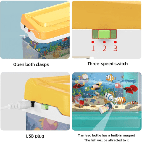 Peștii magnetici răspund la hrănitoarea specială inclusă, adăugând o notă de realism.