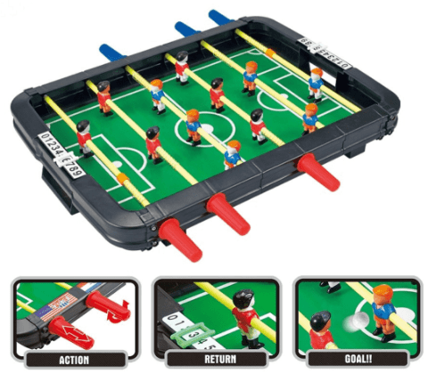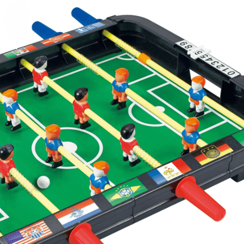 Acest set de fotbal de masă aduce emoția stadionului direct în casă, oferind copiilor șansa să joace meciuri captivante în orice moment.