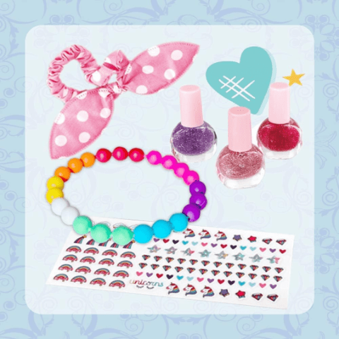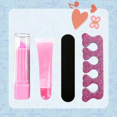 Lacurile de unghii, abțibildurile tematice și separatoarele pentru degete fac ca joaca de manichiură să fie realistă și educativă.