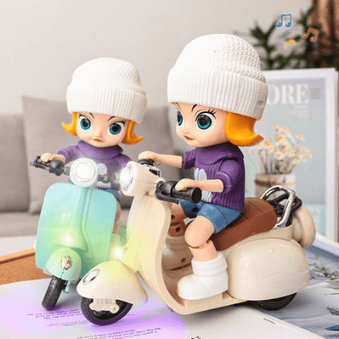 Motocicleta are funcție de rotire și efecte muzicale vesele, atrăgând atenția și menținând entuziasmul celor mici.
