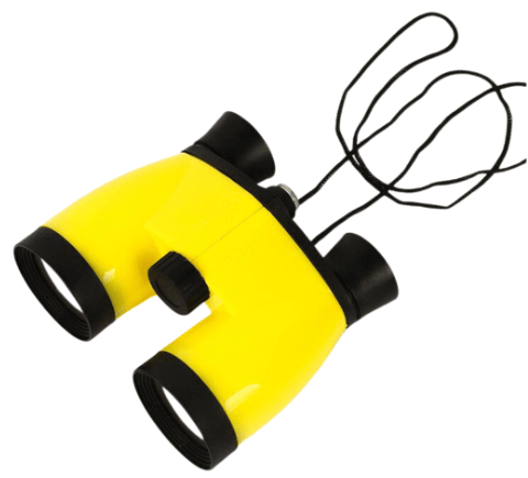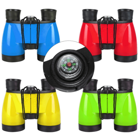 Un binoclu viu colorat, ușor de ținut în mână, perfect pentru micii exploratori curioși.