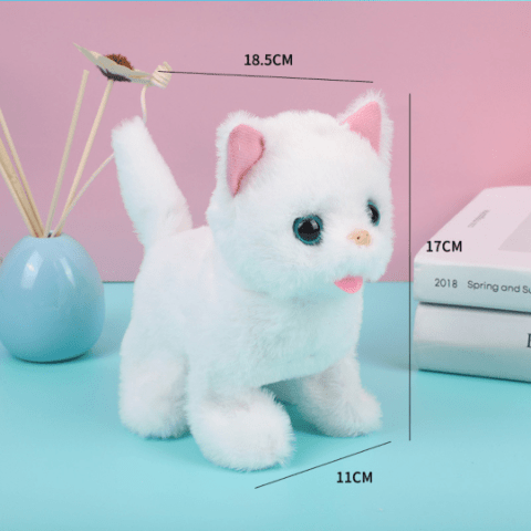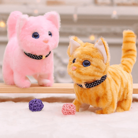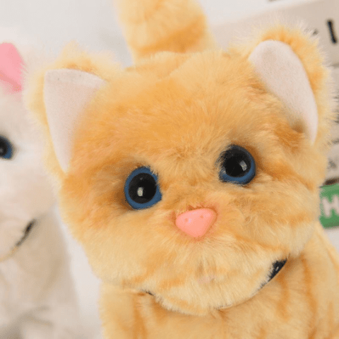 Pisicuța de pluș interactivă aduce zâmbete copiilor prin culorile vesele și expresiile realiste.