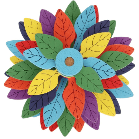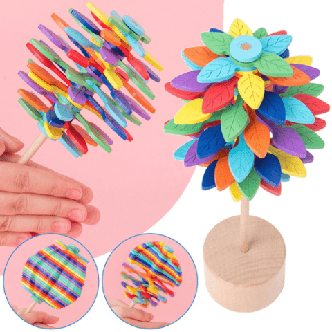 Arborele Montessori din lemn atrage atenția prin frunzele viu colorate care prind viață atunci când sunt puse în mișcare.