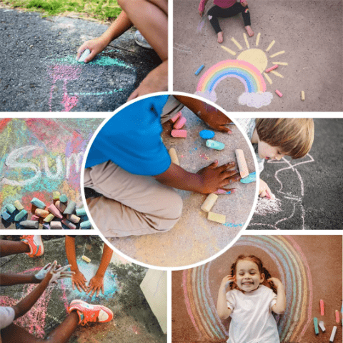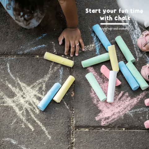🎨 Transformă trotuarul într-o pânză uriașă! 👣 Copiii creează desene colorate, șotron și jocuri educative. ✨ Creta lavabilă, 12 culori vii!