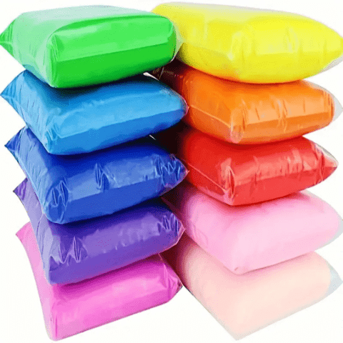 Setul conține 12 pachețele de plastilină air dry clay în culori diverse, perfecte pentru creații vesele și colorate.