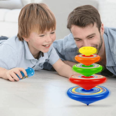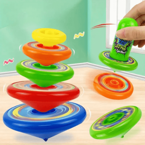 Setul de titirezi colorați aduce o explozie de distracție și competiție în orice cameră de joacă.