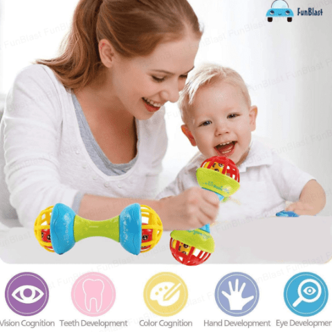 Sunetele vesele și mișcarea bilelor din interior dezvoltă auzul și curiozitatea copilului.
