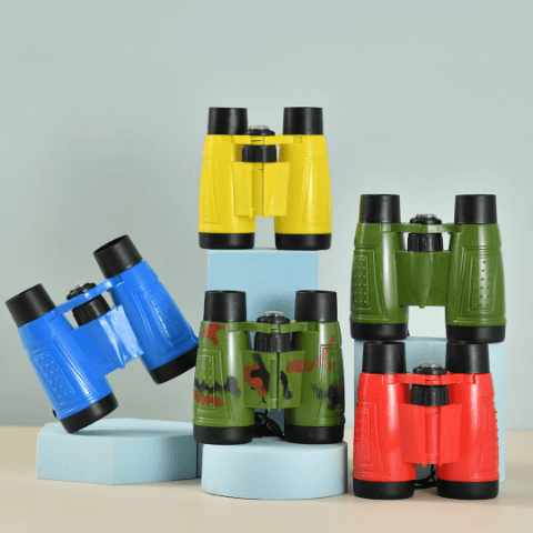 Disponibil în culori vii – albastru, galben, roșu și verde – fiecare copil își poate alege binoclul preferat pentru aventurile de afară.