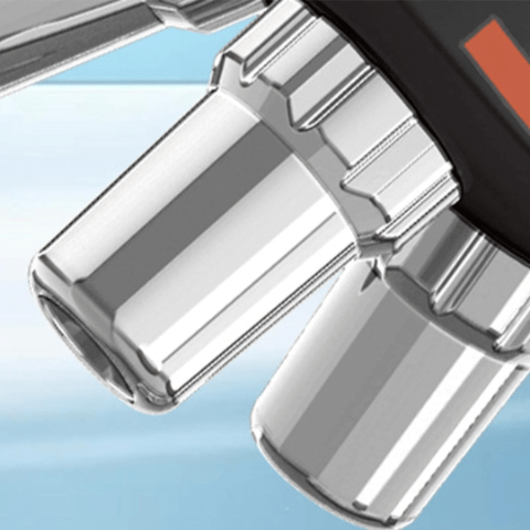 Lentilele rotative permit reglarea rapidă între niveluri de mărire 100x, 600x și 1200x.