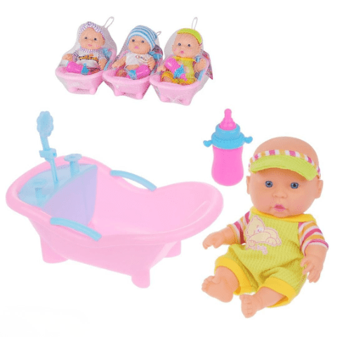 Copilul poate hrăni bebelușul cu biberonul după baie, imitând momentele autentice de îngrijire.