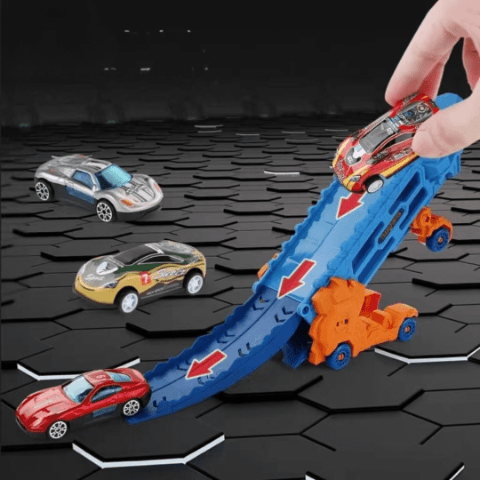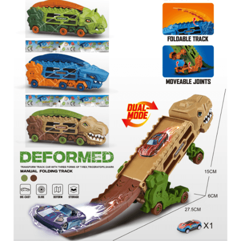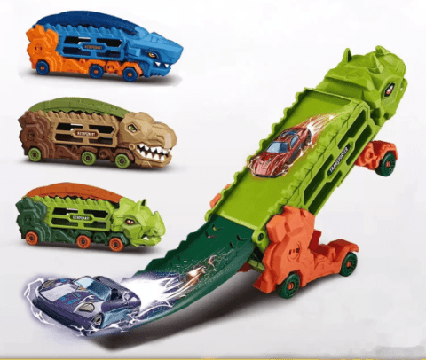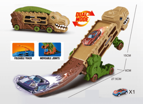 Această jucărie inovatoare combină două lumi preferate de copii: mașinile de viteză și dinozaurii preistorici.