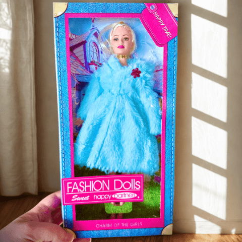 Această păpușă fashion îmbrăcată în palton pufos aduce stilul și eleganța în jocurile de rol ale micilor domnișoare.