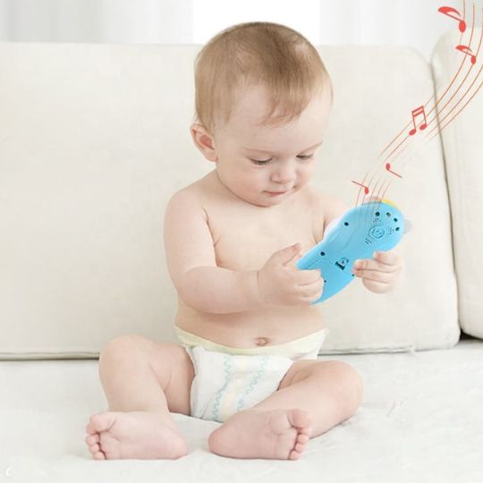 Această telecomandă jucărie este concepută special pentru mâinile mici ale bebelușilor, având un design ergonomic și prietenos.