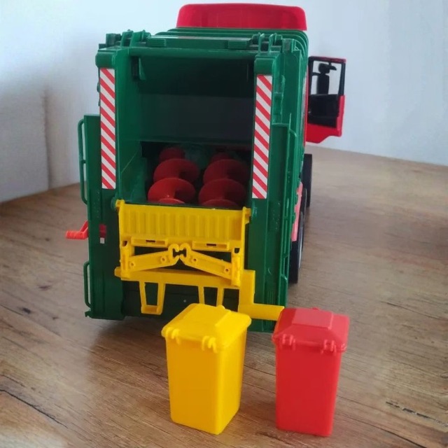 Mecanismul de colectare permite ridicarea pubelelor și golirea lor în compartimentul din spate, dezvoltând coordonarea și logica.