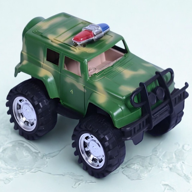 Această mașină off-road militară pentru copii este ideală pentru joacă plină de aventură și explorare. Copilul împinge mașina, trece peste obstacole imaginare și creează misiuni de patrulare sau salvare.