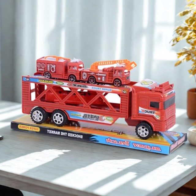 Acest camion de transport pentru copii transformă joaca într-o misiune plină de acțiune, combinând vehiculele de pompieri cu scenarii realiste de intervenție.