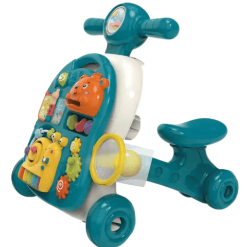 Designul tip ride-on permite folosirea ca vehicul de împins, oferind o experiență de joacă plină de energie și mișcare.