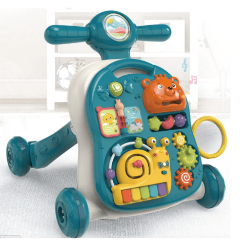 Acest centru educativ verde 3-în-1 este un partener perfect pentru micuții exploratori, combinând funcții de plimbător, masă de joacă și panou interactiv.