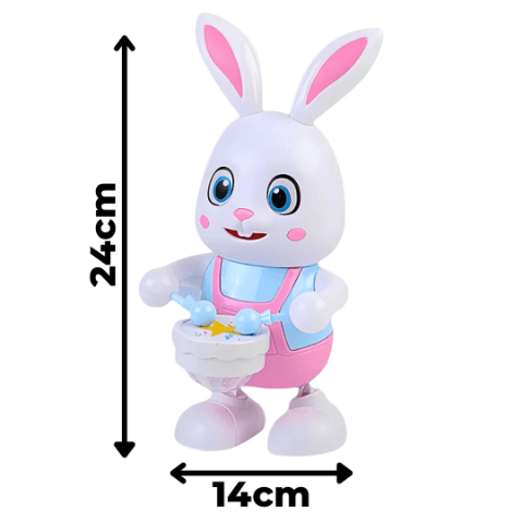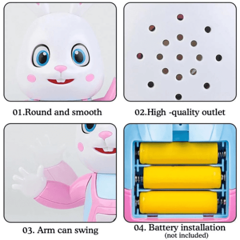 Iepurașul are design prietenos, cu urechi lungi și expresie amuzantă, fiind ideal pentru jocuri interactive.