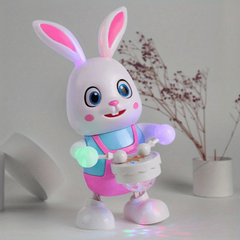 Iepurașul vesel cu tobe este pregătit să aducă distracție și voie bună copiilor.