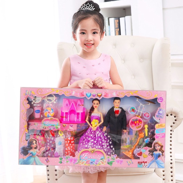 👗 Fetița poate schimba rochiile miresei, crea scenarii de nuntă și organiza propriul bal regal, dezvoltând imaginația și creativitatea.
